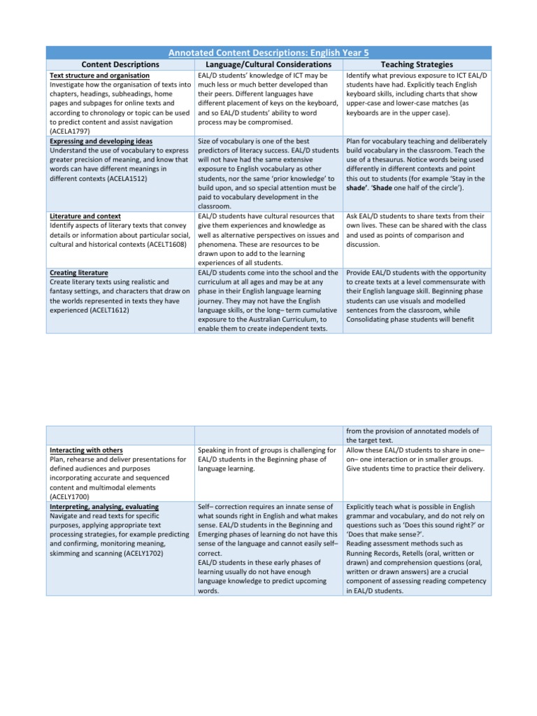 English as an Additional Language or Dialect Teacher Resource. Annotated Content Descriptions Science Foundation to Year 10 - PDF Free Download